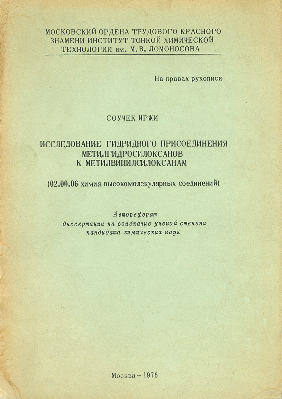 Když si vzpomínám a rekapituluji obsah, rozsah a množství času, které jsem věnoval jak experimentálním pracem, tak i analýze získaných výsledků a formulaci závěrů, tak mohu konstatovat že šlo nejméně o 3 disertace. Součastný rozsah disertačních prací je podstatně menší, nemluvě o tom, že na některých vysokých školách, zvláště netechnických, se jedná o plagiáty, nebo částečně opsané práce, k čemuž zvláště pomáhá internet.